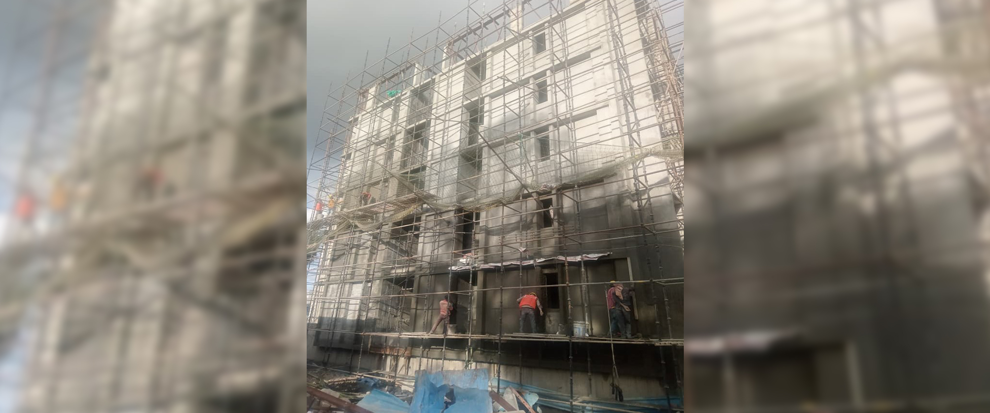 B-BLOCK SOUTH SIDE EXTERNAL PLASTERING WORK IN PROGRESS